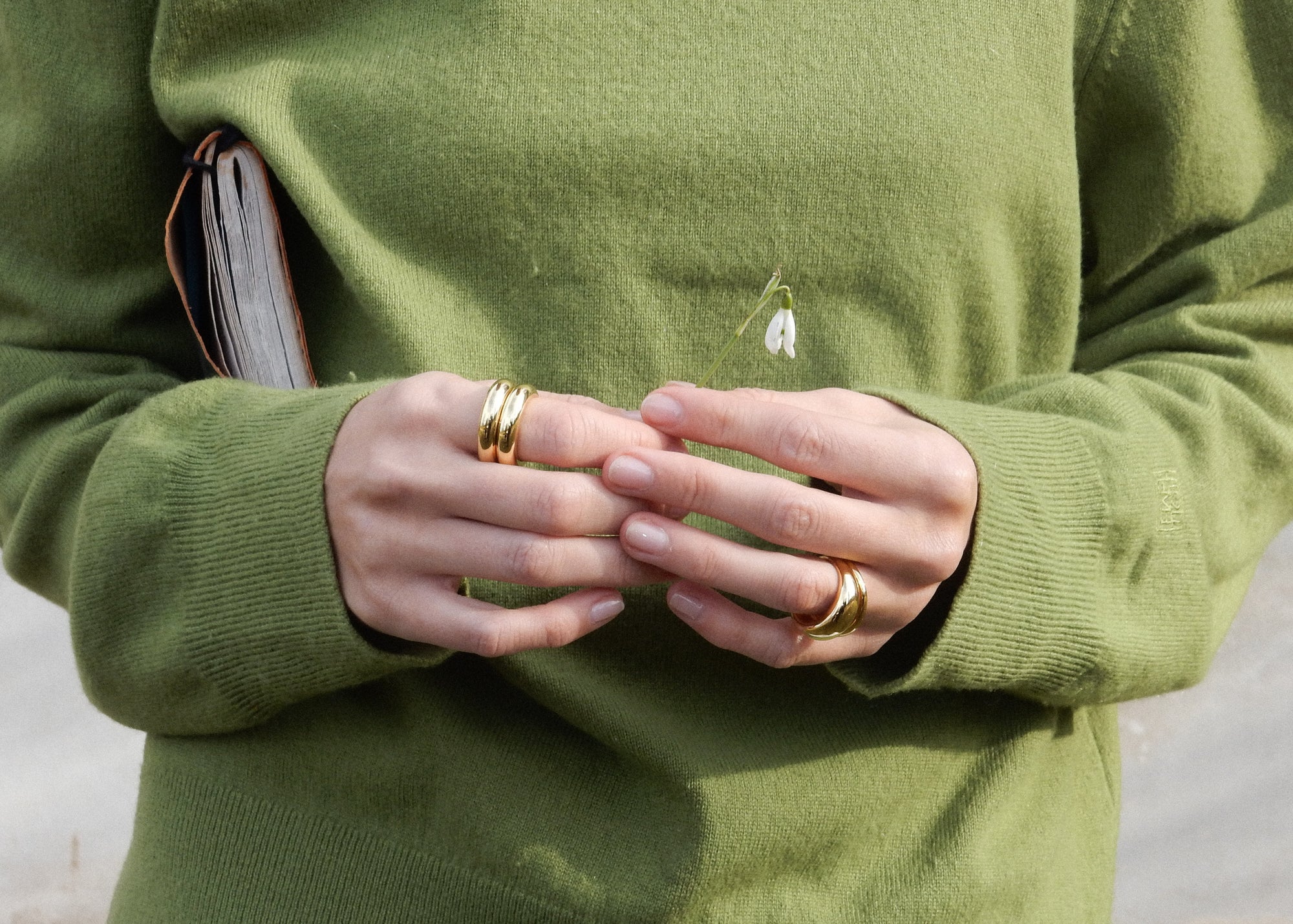 Layer sculptural shapes with delicate bands and create a combination that feels entirely you.